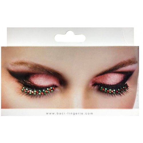 Эффектные и стильные черные ресницы с красными и зелеными стразами от Baci – это идеальное дополнение для создания незабываемого образа!