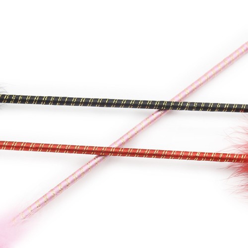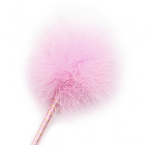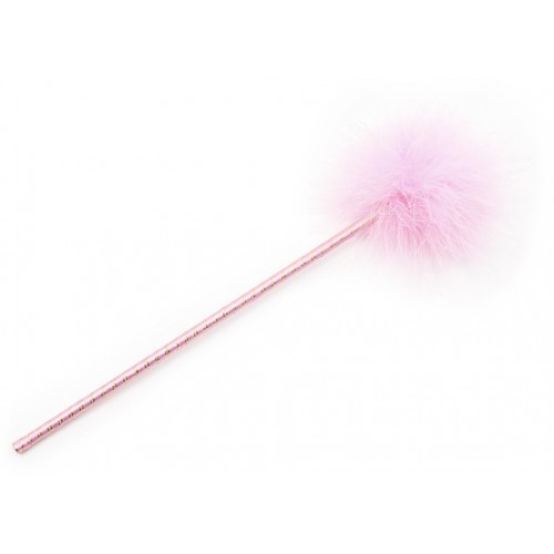 Розовый перьевой тиклер с атласной ручкой 34 см