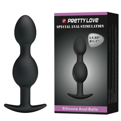 Пробка имеет ограничительное основание для безопасного использования, а продолговатая форма шариков облегчает введение в анус.