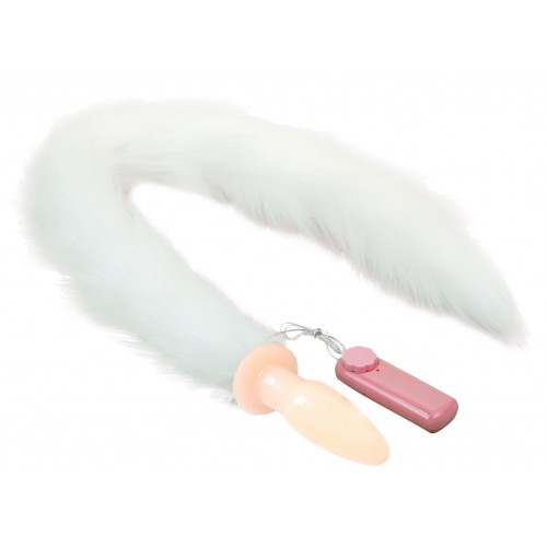 Анальная вибровтулка из силикона с длинным белым хвостом 84 см
