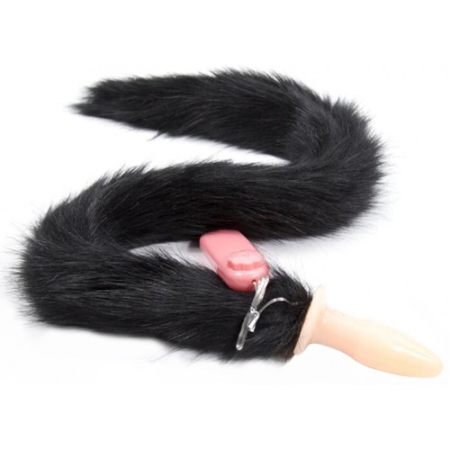 Анальная вибровтулка из силикона с длинным черным хвостом 84 см