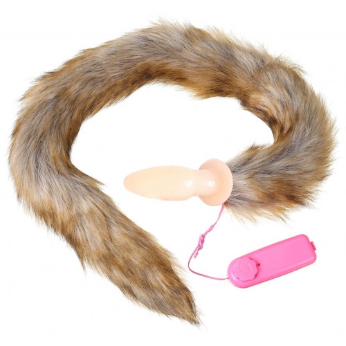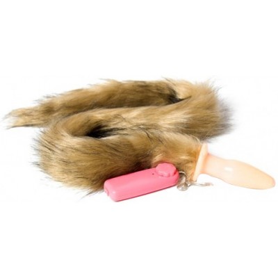 Анальная вибровтулка из силикона с длинным рыжим хвостом 90 см