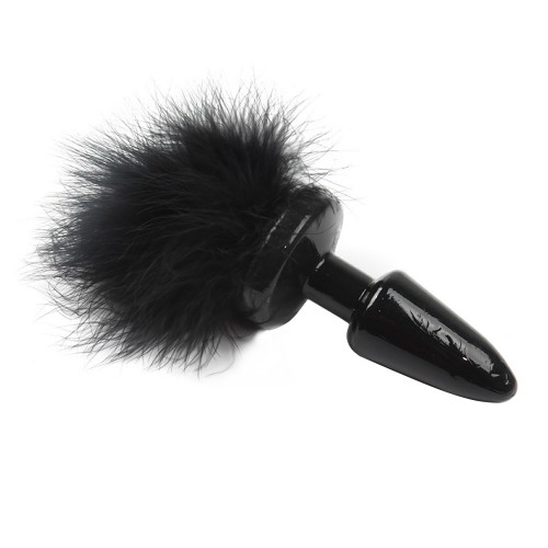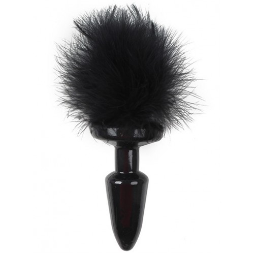 Черная силиконовая анальная пробка с пушистым хвостиком