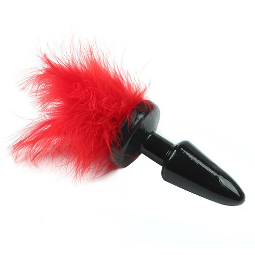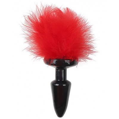 Черная силиконовая анальная пробка с пушистым красным хвостиком