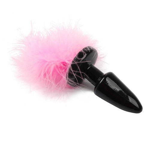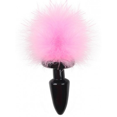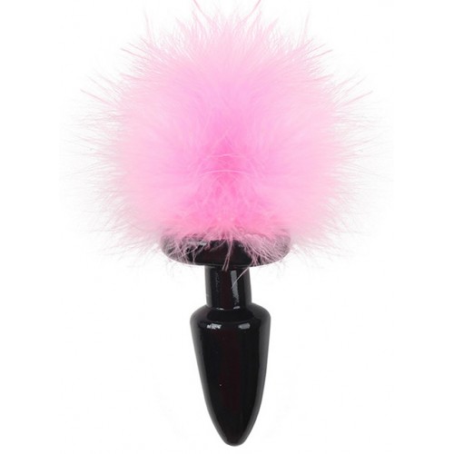Черная силиконовая анальная пробка с пушистым розовым хвостиком