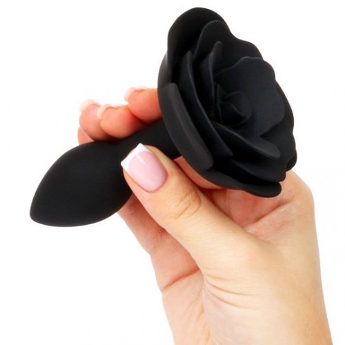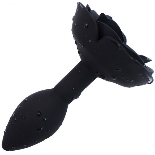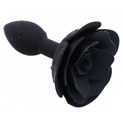 Черная силиконовая анальная пробка с розой S