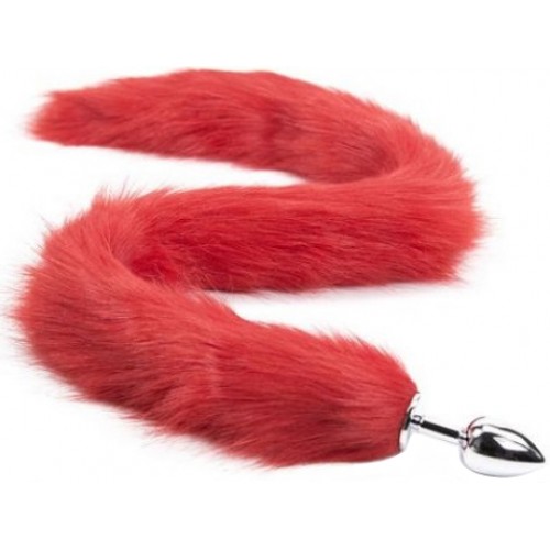 Металлическая анальная пробка L с длинным красным хвостиком 86 см