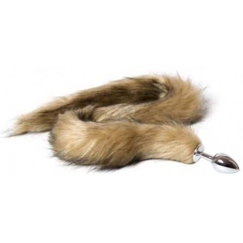 Металлическая анальная пробка M с длинным бурым хвостиком 85 см