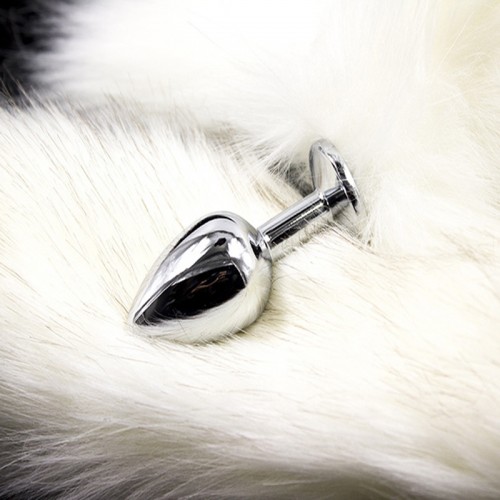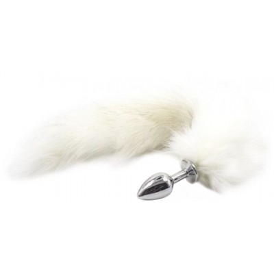 Металлическая анальная пробка S с длинным белым хвостиком 41 см