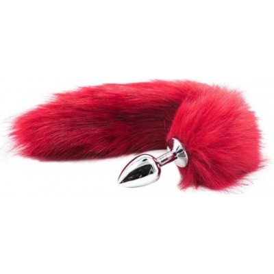 Металлическая анальная пробка L с длинным красным хвостиком 45 см