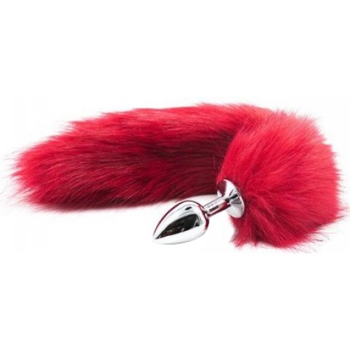 Металлическая анальная пробка M с длинным красным хвостиком 44 см