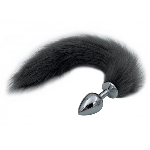 Металлическая анальная пробка M с длинным лисьим хвостиком 43 см