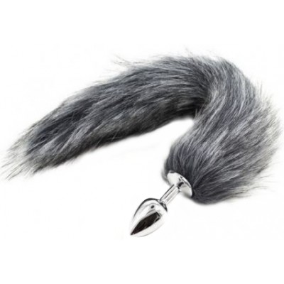Металлическая анальная пробка M с длинным серым хвостиком 43 см