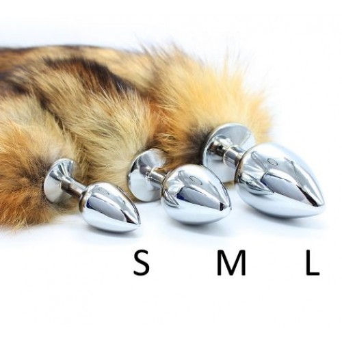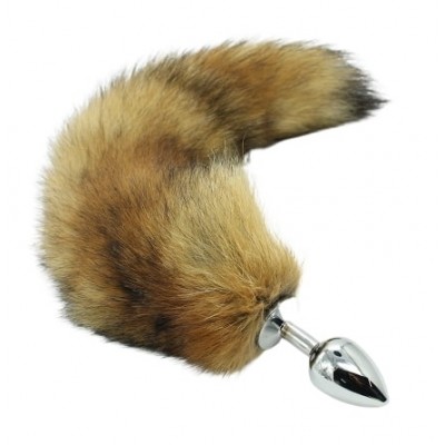 Металлическая анальная пробка M с лисьим хвостиком из натурального меха 39 см