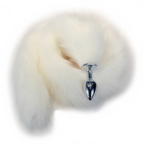 Металлическая анальная пробка S с длинным белым хвостиком 84 см