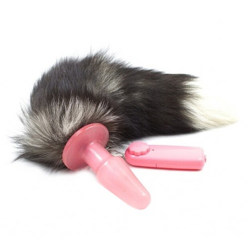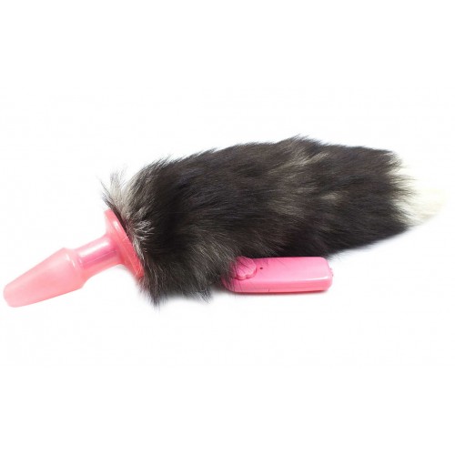 Розовая анальная втулка с вибрацией и бурым хвостиком 55 см