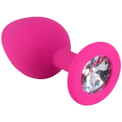 Розовая силиконовая пробка с прозрачным кристаллом М