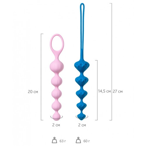 Набор анальных цепочек Satisfyer линейки Beads розового и голубого цвета из гипоаллергенного силикона.