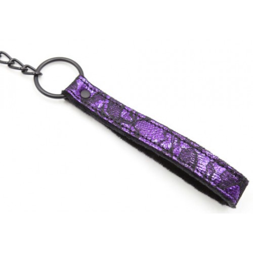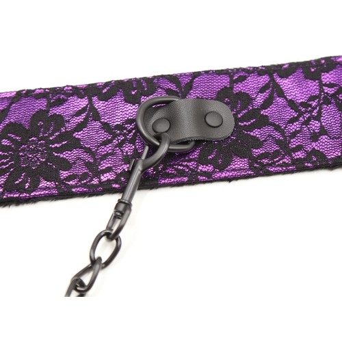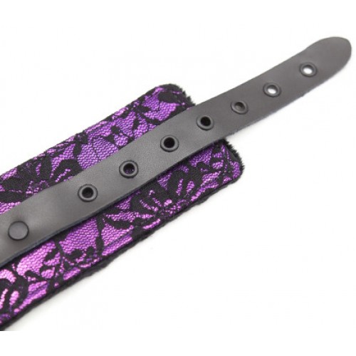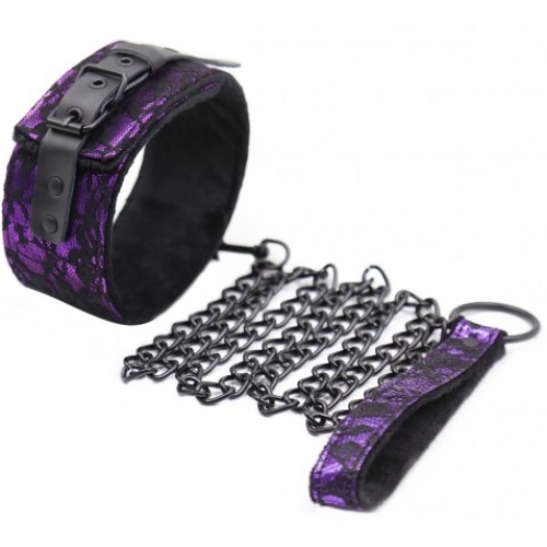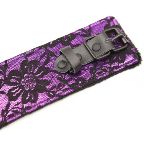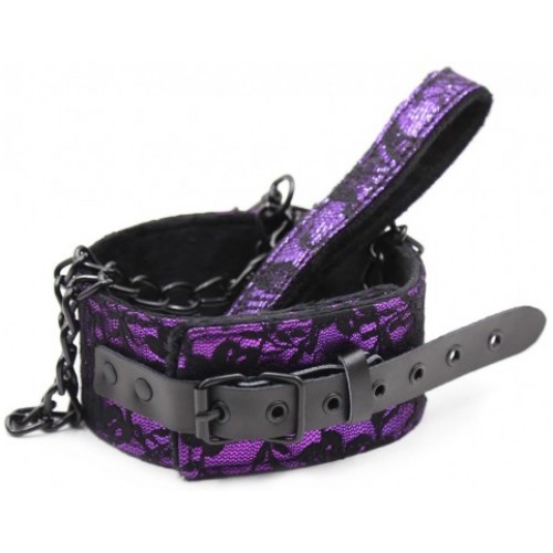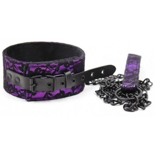Черно-фиолетовый ошейник декорированный кружевом с поводком