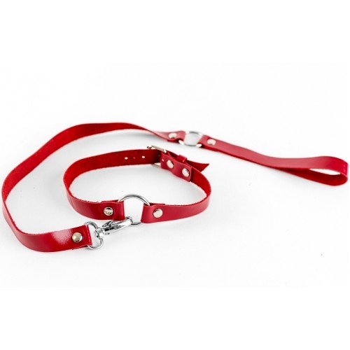 Элегантный чокер с поводком из натуральной кожи красного цвета