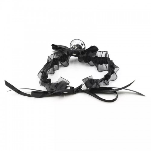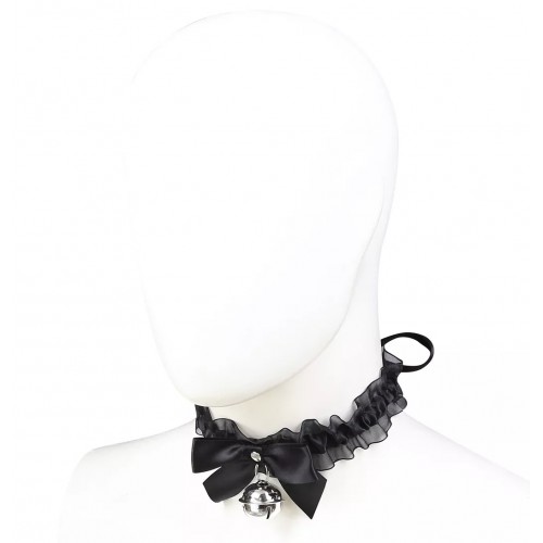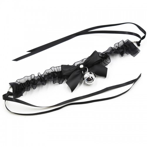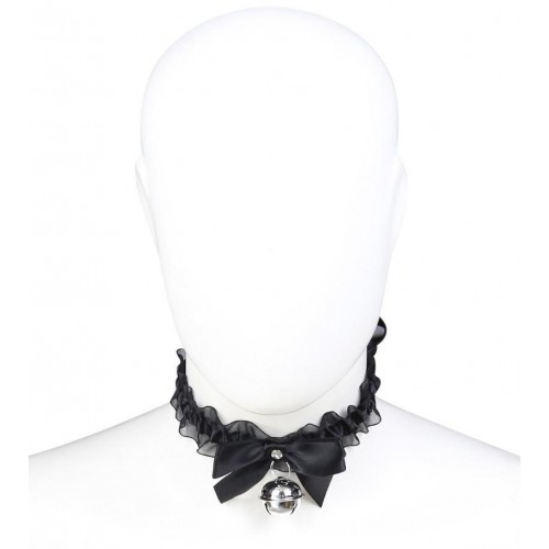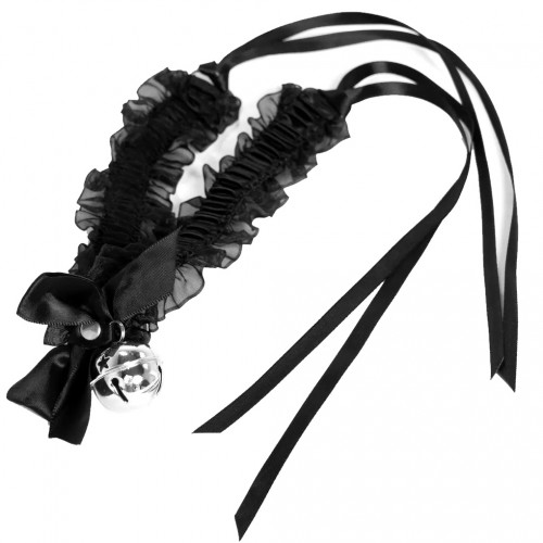 Эротический чокер с черными атласными лентами и бубенчиком