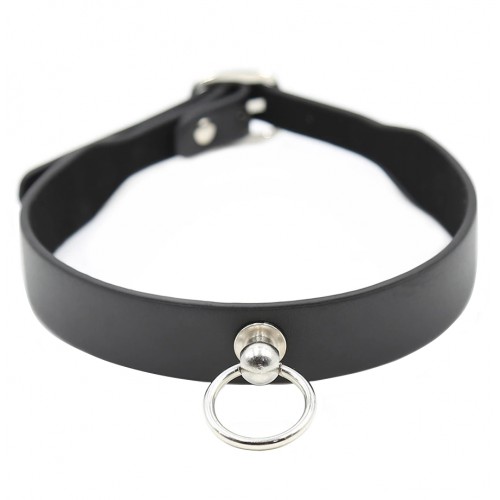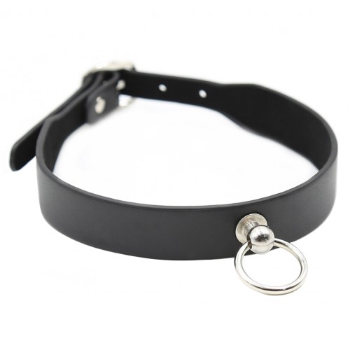 Классический черный ошейник с кольцом