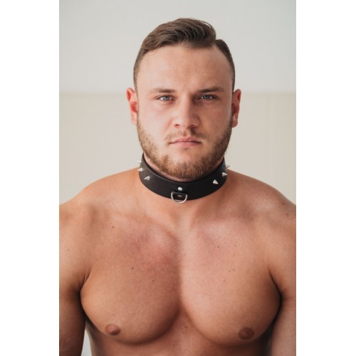 Коричневый ошейник с маленькими шипами XL