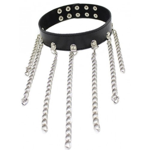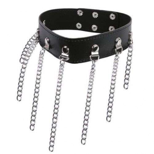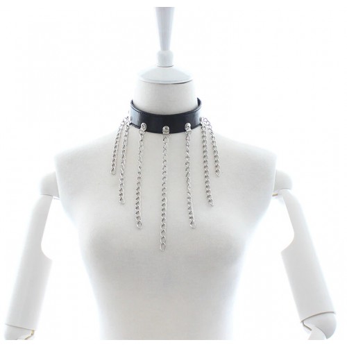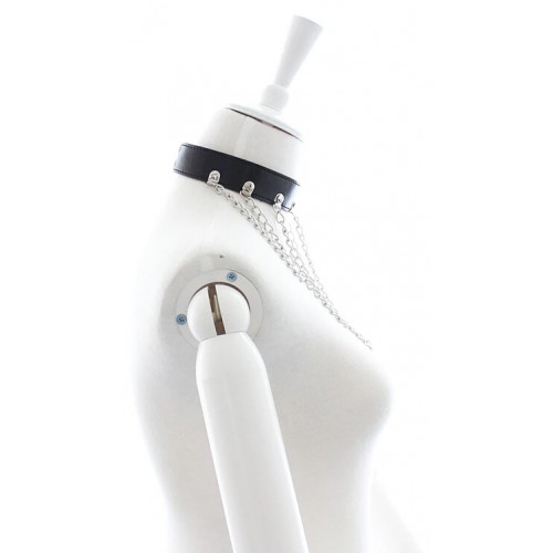 Черный БДСМ ошейник с длинными цепями