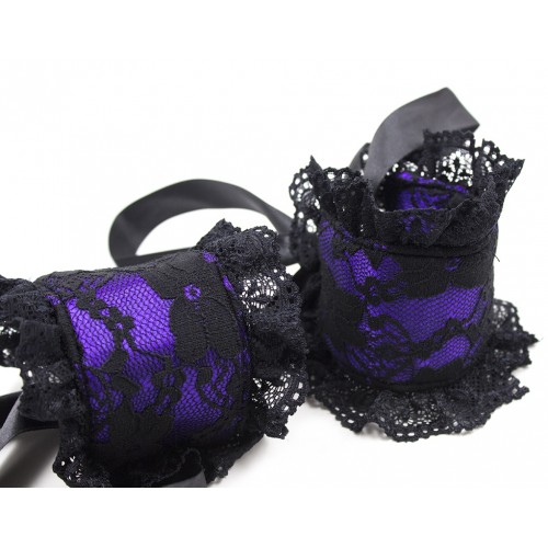 Фиолетовые фиксаторы для рук с кружевом и атласными лентами