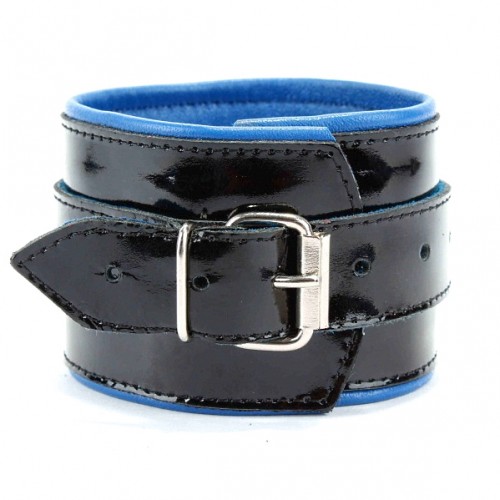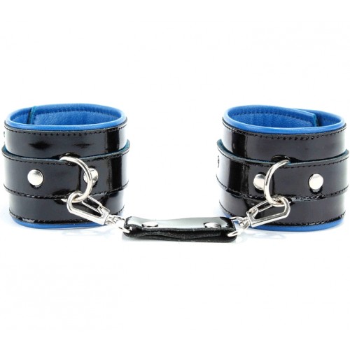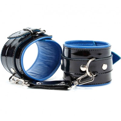 Наручники из черной лакированной кожи с синим подкладом