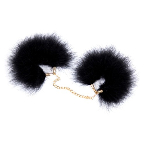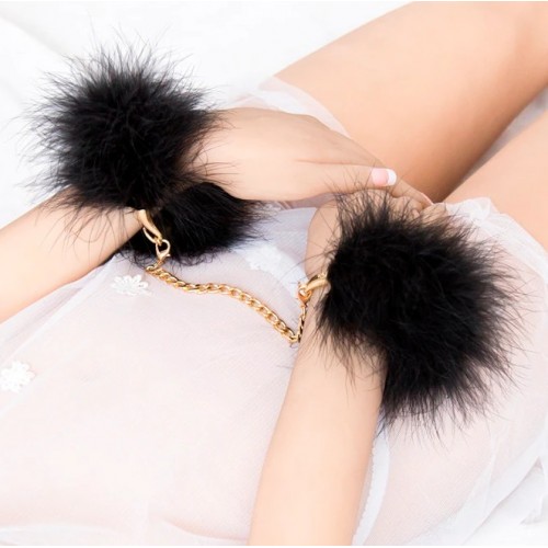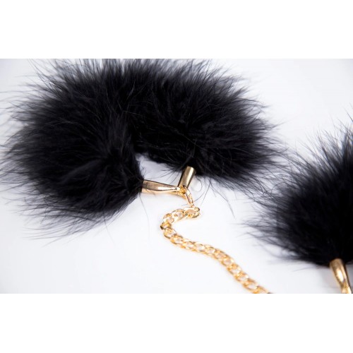 Перьевые браслеты-наручники черного цвета на золотой цепи