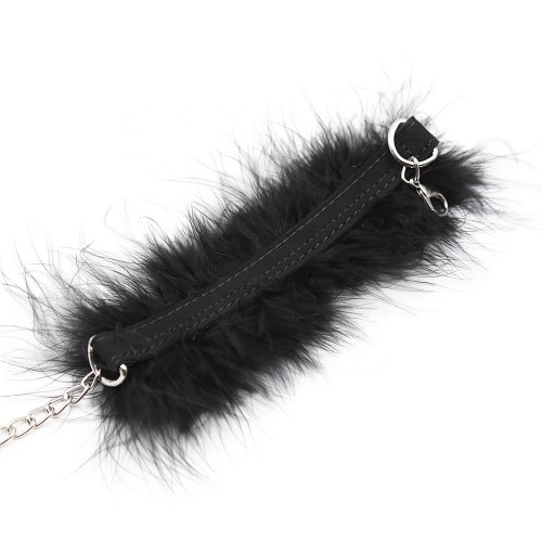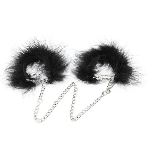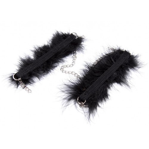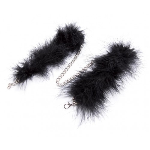 Перьевые браслеты-оковы черного цвета на серебряной цепи