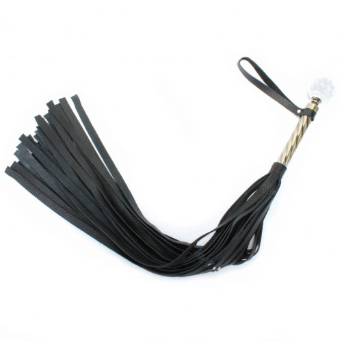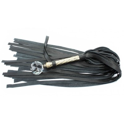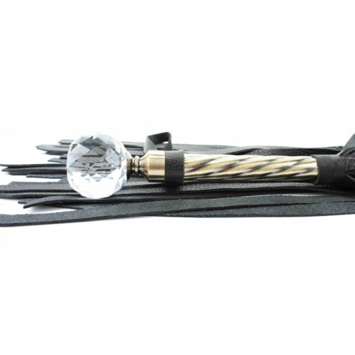 Аксессуар в целом составляет 78 см. Плеть выполнена из натуральной кожи черного цвета. Витая рукоятка из металла длиной 16 см и диаметром 2 см сверху декорирована кристаллом диаметром 5 см.