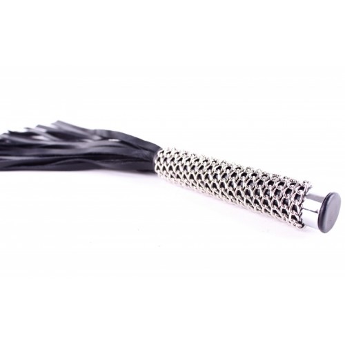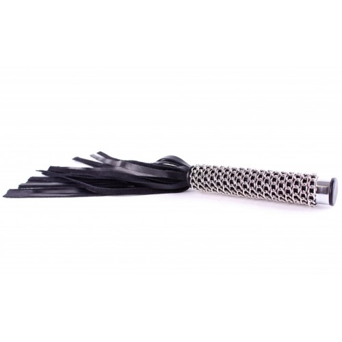 Рукоятка длиной 15 см и диаметром 3 см декорирована металлической цепью, лежит в руке очень комфортно. Плеть имеет 23 мягких хвоста, их длина 25 см.