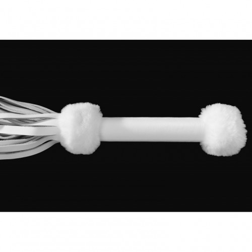 Плеть из натуральной кожи белого цвета с меховым декором 50 см