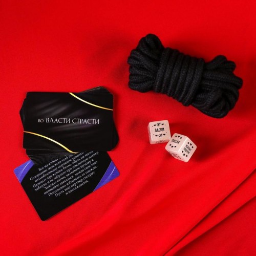 Эротический набор Во власти страсти: верёвка, фанты, кубики 2 шт