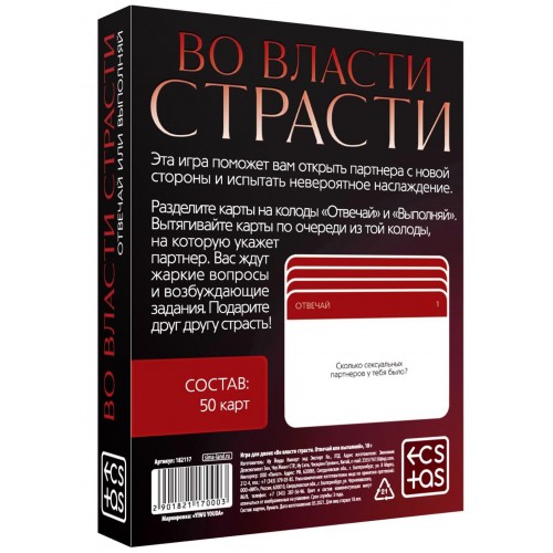 Вас ждут жаркие вопросы и возбуждающие задания, которые обязательно сделают ваш совместный вечер незабываемым!