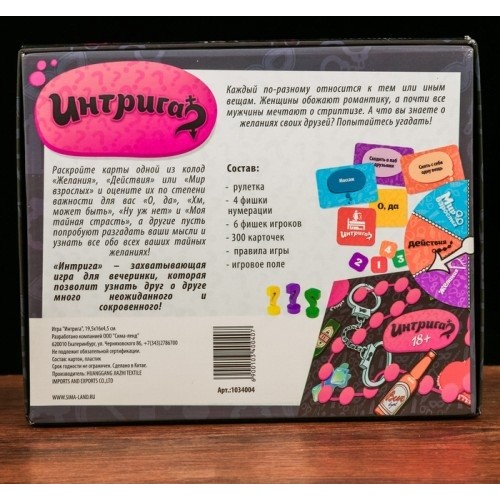 Невероятно захватывающая и пикантная игра для компании, в которой всё тайное становится явным. Узнайте все секреты друг друга, поделитесь своей тайной страстью!