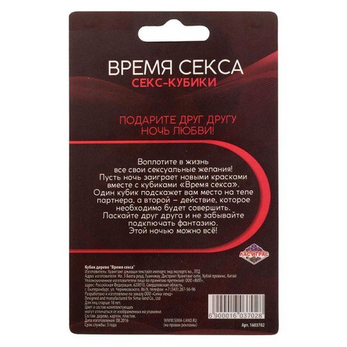 Кубики "Время секса" непременно порадуют Вас и станут прекрасным напоминанием о проведённом вместе времени.