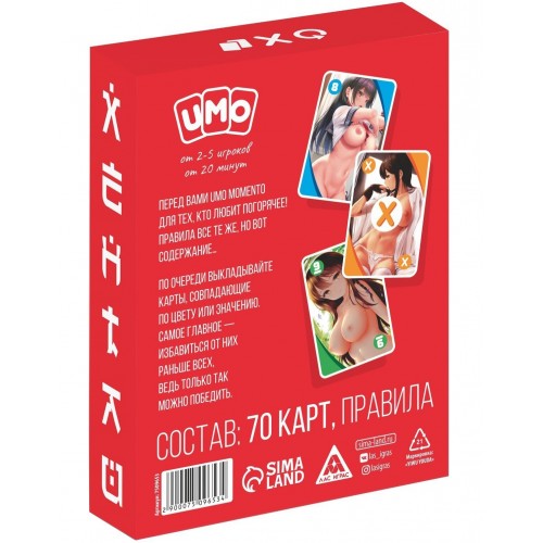 Перед вами Umo Momento для тех, кто любит погорячее! Правила всё те же, но вот содержание... По очереди выкладывайте карты, совпадающие по цвету или значению, самое главное — избавиться от карт раньше всех, ведь только так можно победить.