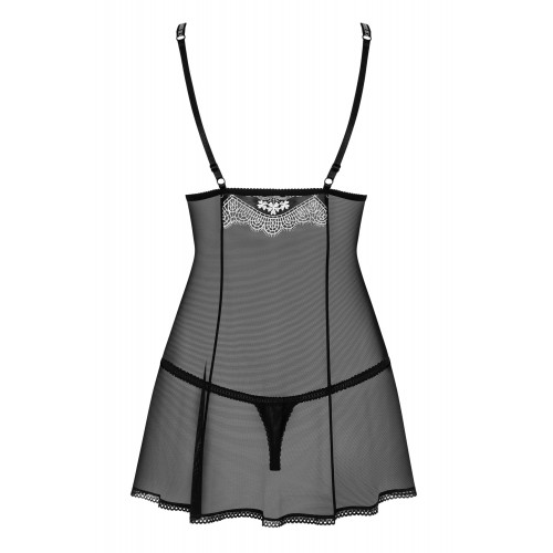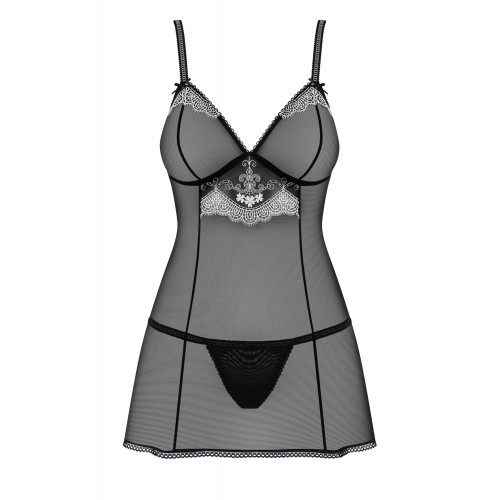 Сексуальная, воздушная сорочка выполнена из нежной сетки черного цвета.
