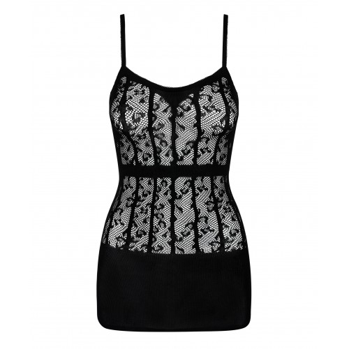 По низу платья - широкая полоса черной непрозрачной ткани.