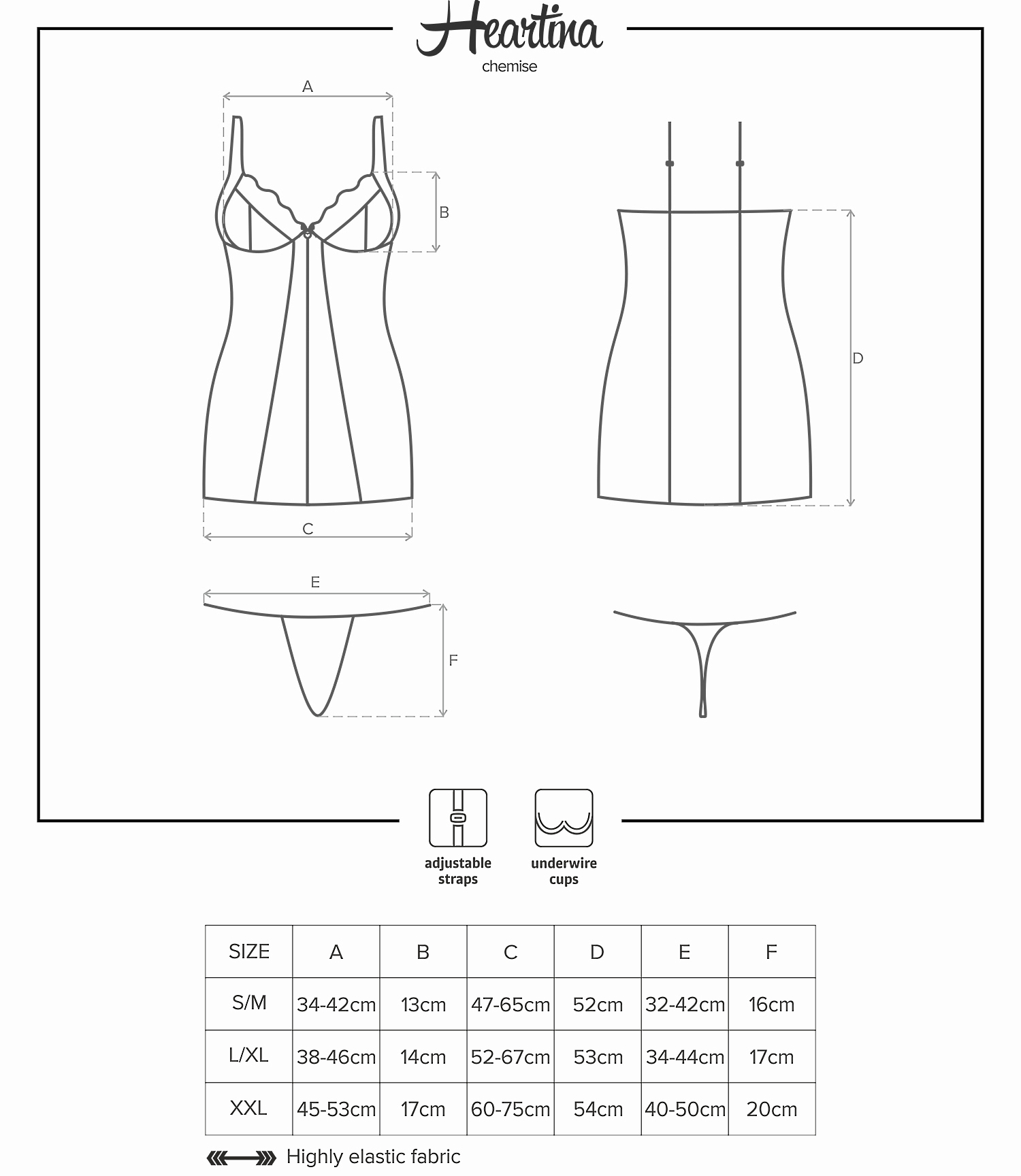 Соблазнительная сорочка и трусики-стринги Heartina S/M