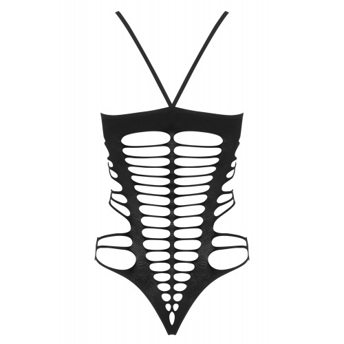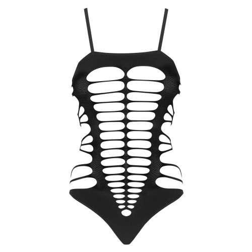Детали: уникальное боди, гарантирующее пикантное веселье, эластичные бретельки расположены буквой V на спине, сексуальные вырезы на спине и животе делают фигуру стройнее, прямой вырез и вырезы на груди - полностью подчеркнутые груди, соблазнительный разрез внизу- решение, делающее бедра соблазнительнее, отобранные волокна с чрезвычайно прочным переплетением, нежная, идеально эластичная ткань Multistretch.
