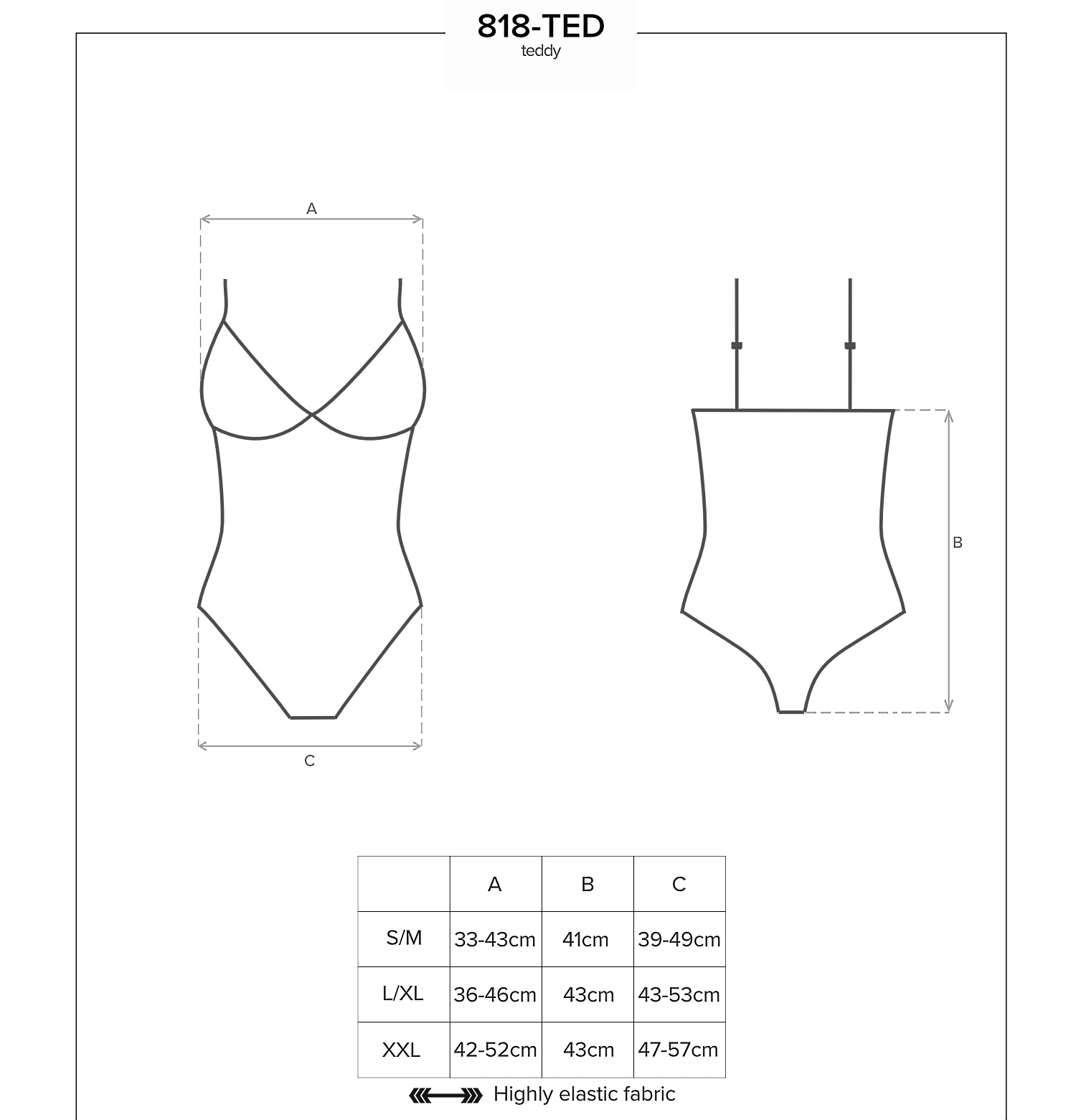 Детали: красивое боди, украшенное розами, регулируемые бретели обеспечивают идеальную посадку, соблазнительные двойные резинки в области декольте, мерцающий кулон в области бюста добавляет еще больше очарования, кокетливое кружево под грудью, на бедрах и ягодицах, открытая промежность, деликатная эластичная ткань.