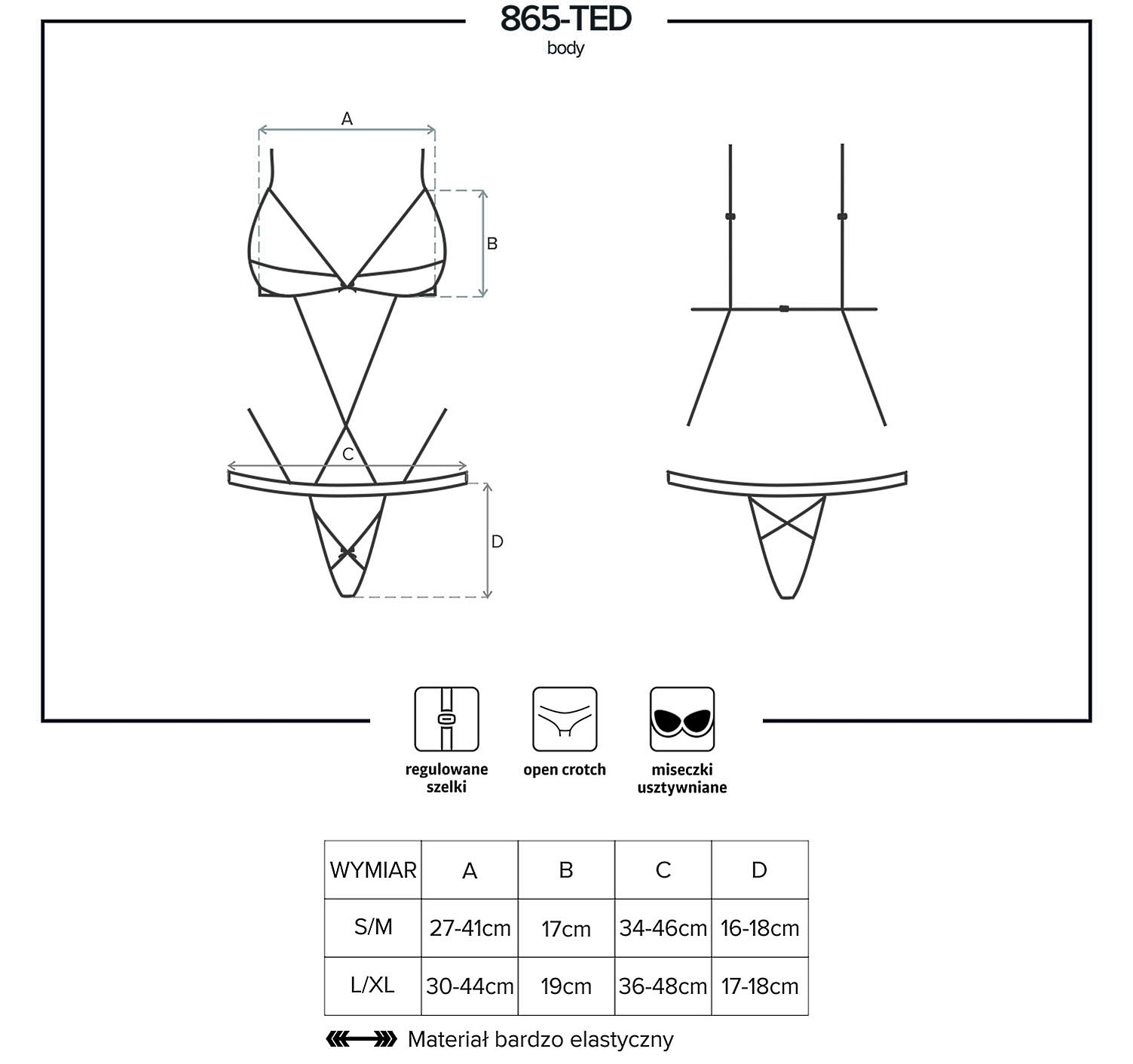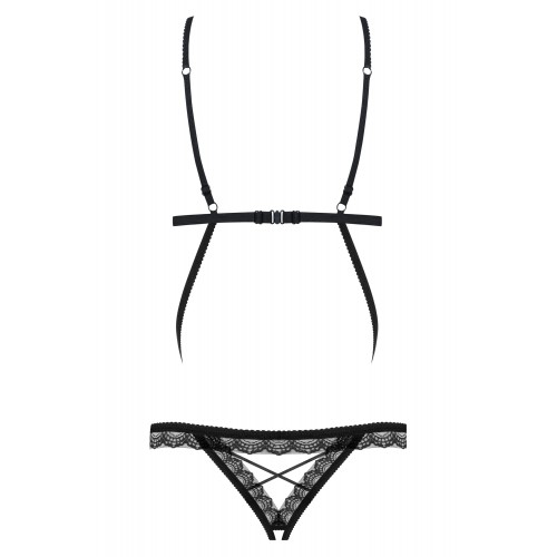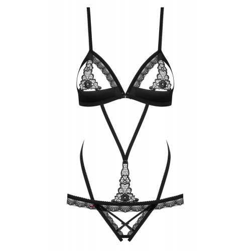 Пикантные открытые чашки, чувственные полоски, пикантные трусики и кружевные аппликации, придающие модели интригующий характер.