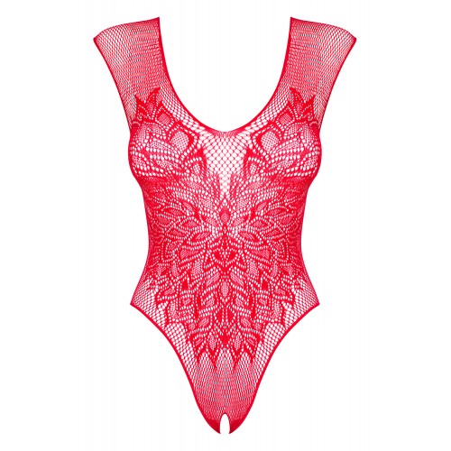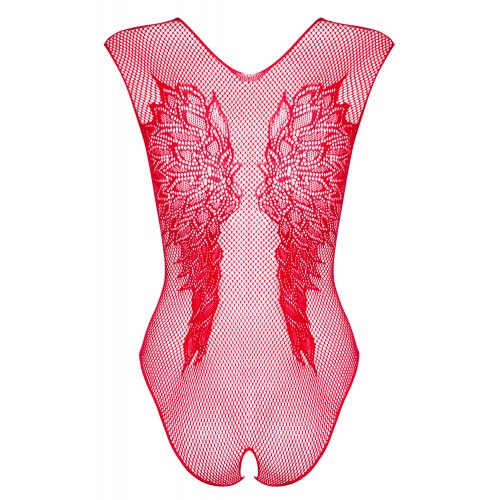 Детали: чувственная красная сетка - феноменально облегает тело, манящее глубокое декольте, интересные узоры спереди, мотив крыльев на спине, открытая промежность, мягкий, очень эластичный трикотаж.