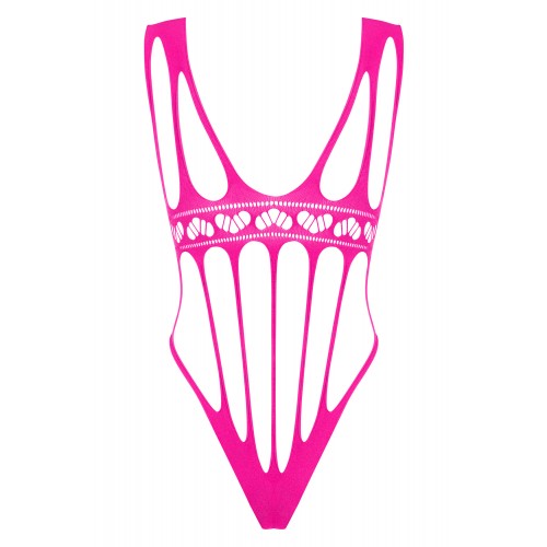 Смелое розовое боди-сетка с соблазнительными вырезами S/L
