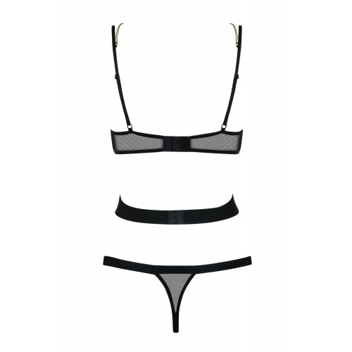 Детали: эластичные ленты-резинки, подчеркивающие форму тела, чашки на косточках - идеальный бюст, регулируемые лямки - комфортная посадка, соответствующие резинки на талии и на животе, цепочка - идеальная деталь (не содержит никель), деликатные ткани и резинки.
