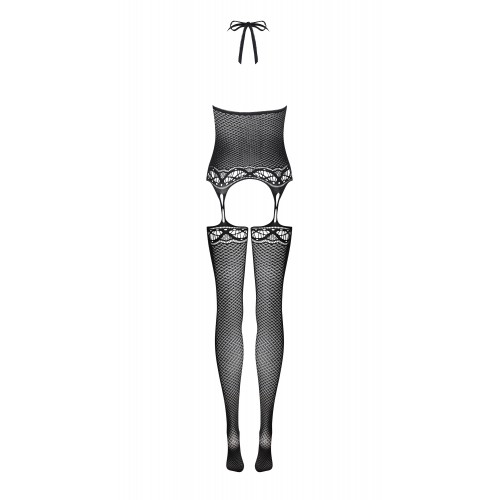 Детали: завязка на шее, прозрачная сетка с соблазнительными узорами, сексуальные, крошечные полоски над бюстом, имитация пояса для чулок - очень заманчивый крой, четкий узор и чрезвычайно прочное переплетение, обнаженная спина и ягодицы, приятная на ощупь, идеально эластичная ткань.